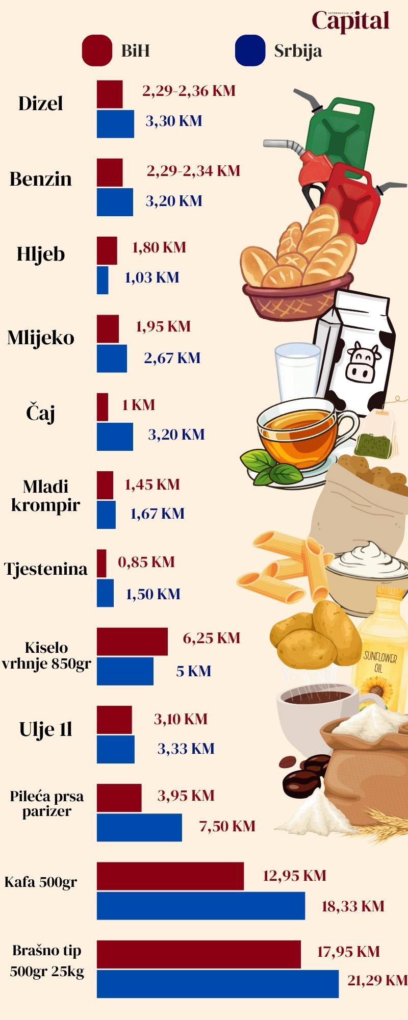 „Srbija je odavno skupa. Bila je negde računica da ako u BiH ideš u nedeljne nabavke i gorivo i trošiš 250 evra, svaki četvrti ili peti odlazak ti je besplatan u odnosu na cene u Srbiji“, kaže on.